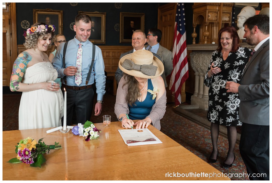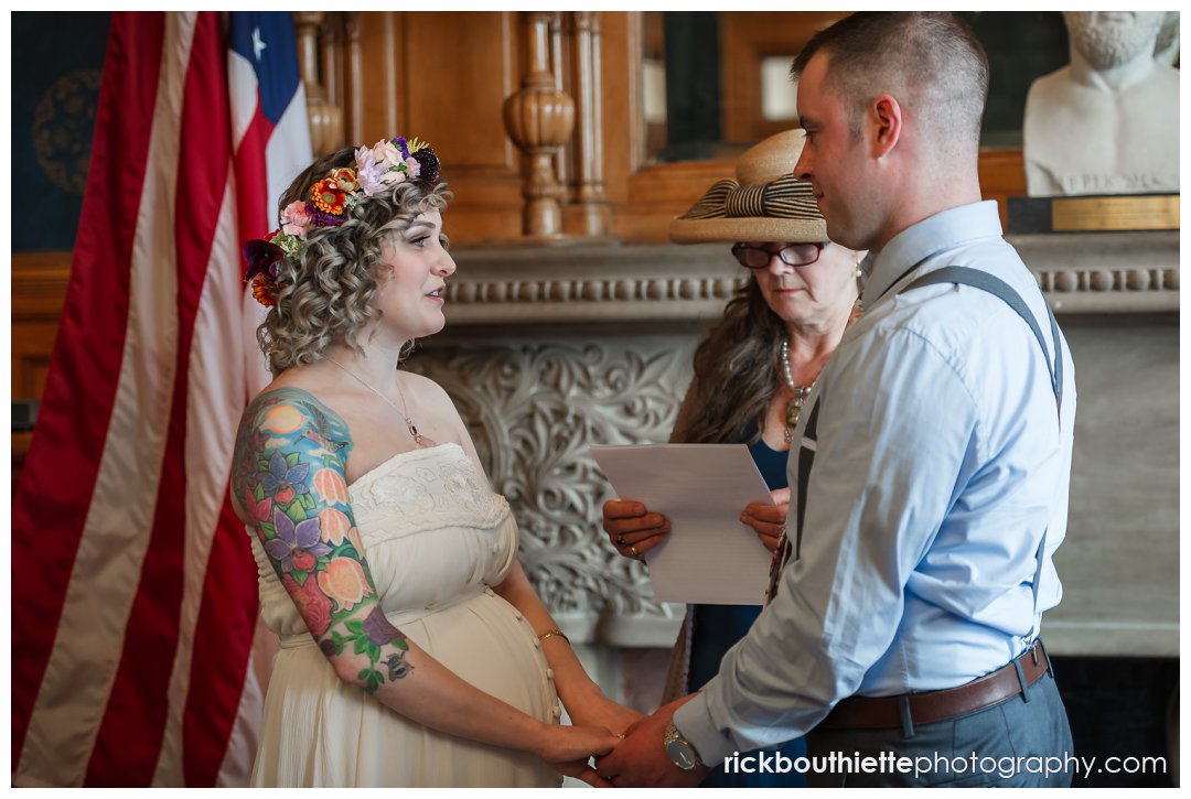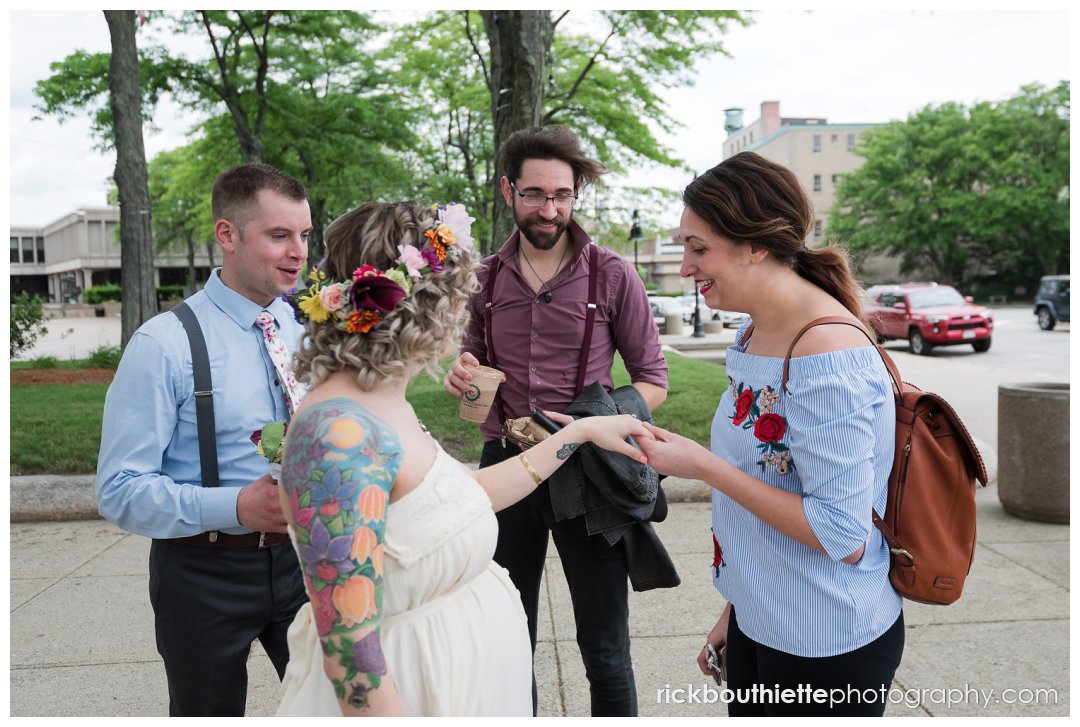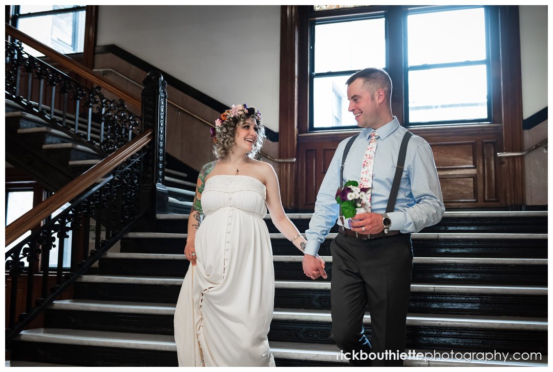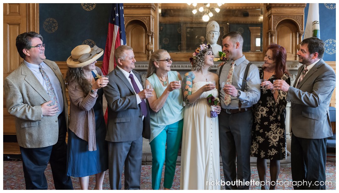 On a Thursday afternoon, full of ease, giddiness, excitement, laughter and love, they entered Lowell City Hall and headed right for the City Clerk’s office to pick up their marriage license. After signing a few documents, they headed up the marble stairs to the Mayor’s Reception Room for their ceremony officiated by Ida’s godmother. Their decision to start their lives together with full focus on their marriage was so special. The intimacy and simplicity of the entire afternoon resonated with us and everything we love about love. They were not a slave to their schedule, they were not pulled in a million directions, they did not do anything because “that’s what you are supposed to do on your wedding day”. Instead, their day was marked with ease, smiles, laughter and people that deeply love Ida and Scott.
